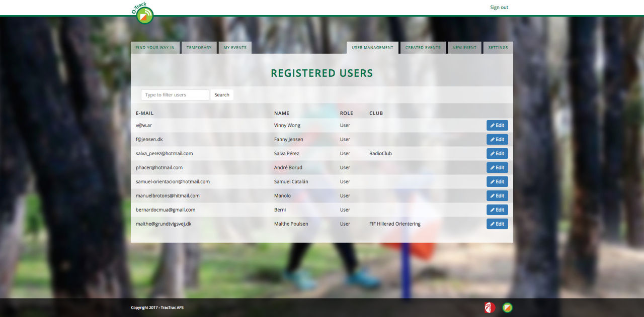 Una vez creada la cuenta asociada a un club, por favor escribe un e-mail a o-track-esp [at] tractrac.com especificando el nombre de tu cuenta de O-track, tu país y tu club. En el mensaje, deberás solicitar convertirte en un administrador. A partir de ahí, podremos ascenderte a administrador con la posibilidad de crear eventos en O-track.